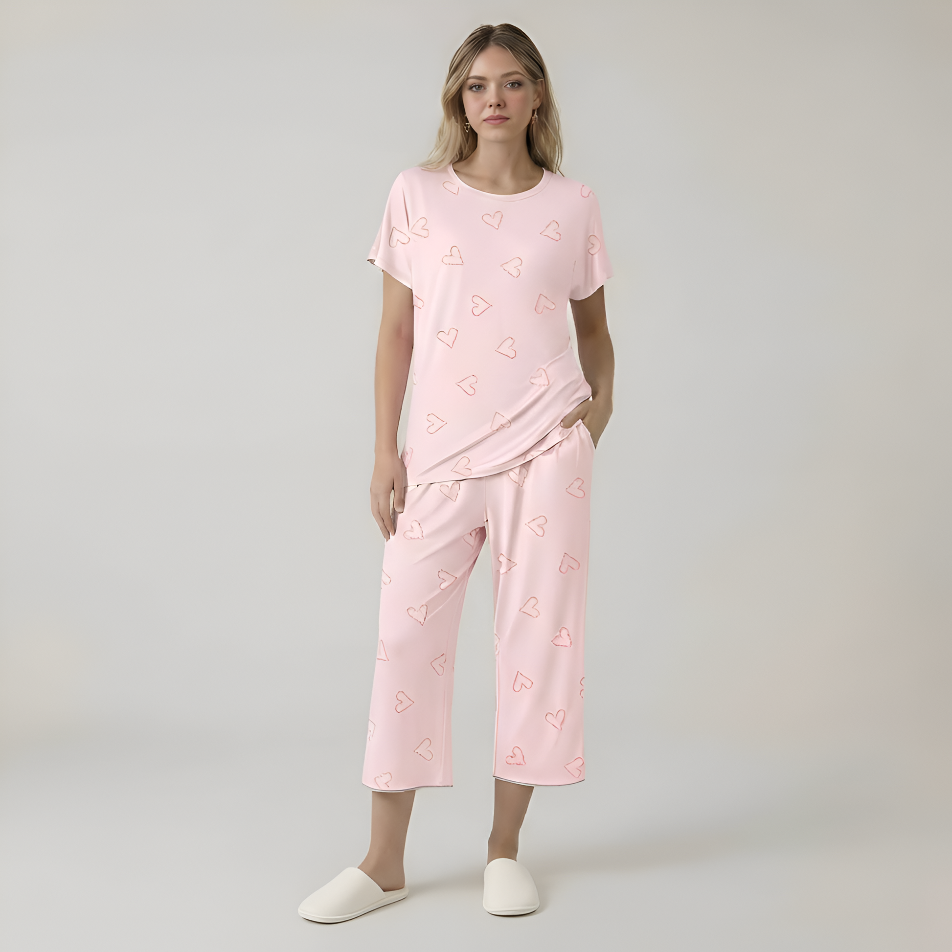 Printed Short Sleeve Capri Sleepwear Set For Women
