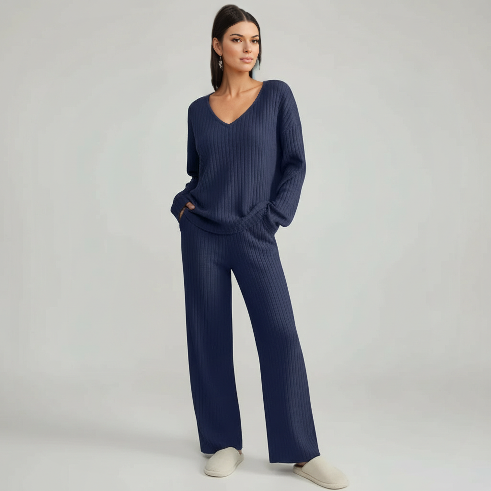 Pullover Ribbed Knit Matching Lounge Set